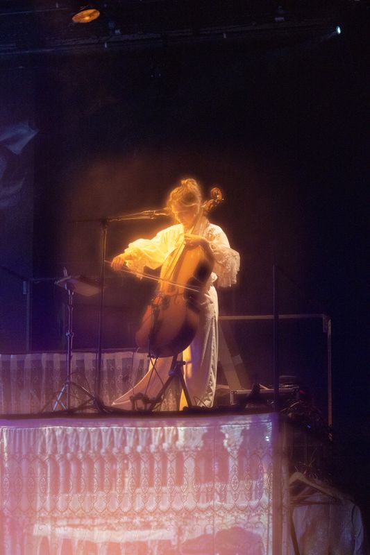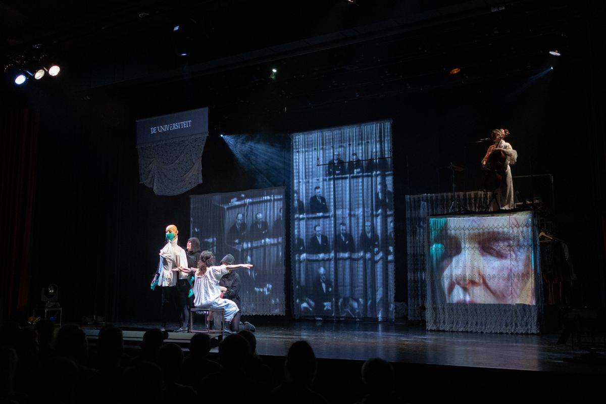 En die live muziek. De rockende en pulserende cello – de drumster kon er voor deze dernière helaas niet bij zijn – gaf het geheel extra kracht. Een absolute meerwaarde.