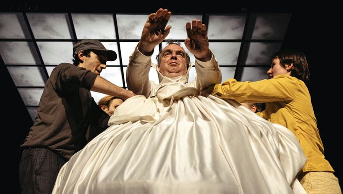 Gilles: “Misschien wel, maar het ontstaat vooral omdat ik vanaf het eerste moment meewerk. Bij veel gezelschappen komt de scenografie pas later, bij ons groeit ze parallel met de tekst. Decor en spel beïnvloeden elkaar constant. Dat geeft een soort symbiose die voor ons vanzelfsprekend voelt.”